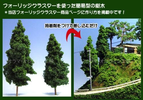 また、左側の簡易型の樹木は、2ミリの丸棒にフォーリッジクラスター