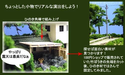 そのほか、樹木・製作しておいたストラクチャーと露天風呂を設置