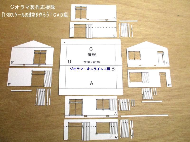 3.5)の3.5間の実寸法の建物を製作します。(*単位mm)ので、それぞれ、下記の画像の