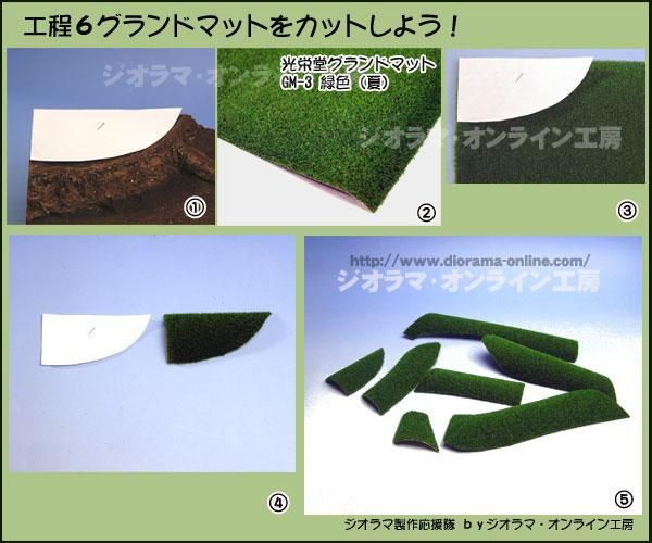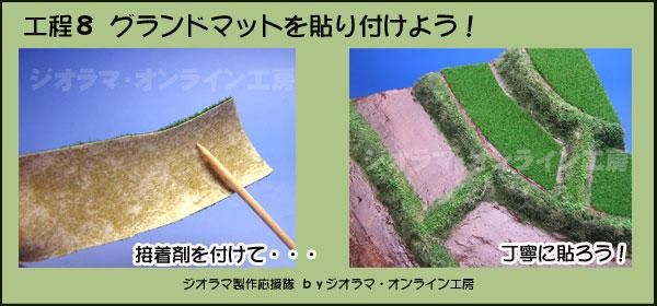 次は、いよいよ、工程6でカットしておいたグランドマットの裏側に爪楊枝