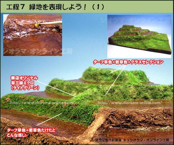 まず、あぜ道と土手は、KATO(ウッドランドシーニックス)のターフ草色と