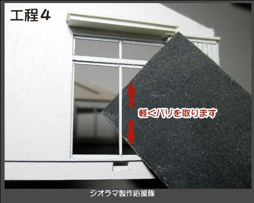 ありますので窓枠などを中心に全体にさっと紙やすりで整えておきます。