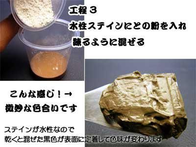 着色ステインはとの粉と同メーカーが良いのですが今回は、微妙な
